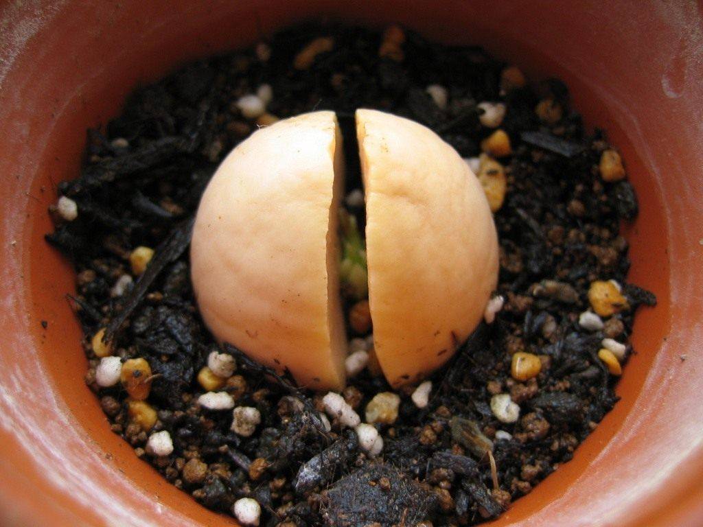 Tohumun doğrudan toprağa filizlenmesi gerekiyorsa, onu üçte bir oranında künt uçlu toprağa yerleştirmeniz ve zemini iyice nemlendirmeniz gerekir. O zaman doğaçlama bir sera düzenlemeniz gerekir - tohumu plastik bir torba veya cam kapakla örtün. Bitki daha sonra güneşin altına yerleştirilir. 1.5-2 ay sonra, kökler yarıktan sonra ilk sürgünlerden ortaya çıkar.