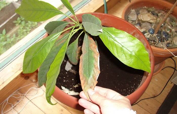 Evde avokado ağacı, çeşitli mantar veya viral hastalıklara karşı oldukça hassastır. Gözaltı koşulları ihlal edilirse, bunu tesisin durumuna göre hemen öğrenebilirsiniz. Yapraklar kurur ve herhangi bir sebep olmadan koyulaşmaya başlarsa, bir sonraki nakil sırasında bitkinin kökleri zarar görür. Güçlü güneş ışığına maruz kalırsa yanıklar meydana gelebilir.