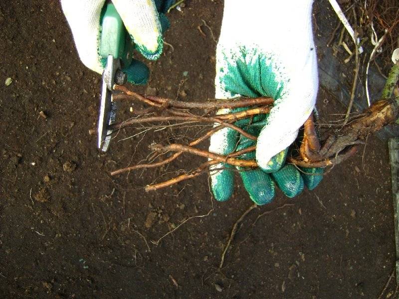 - en fazla 40 cm uzunluğunda bırakarak köklerin bir kısmını kesin (kısaltılmış köklerin bölümleri güncellenir, maksimum 1-2 cm kaldırılır);
