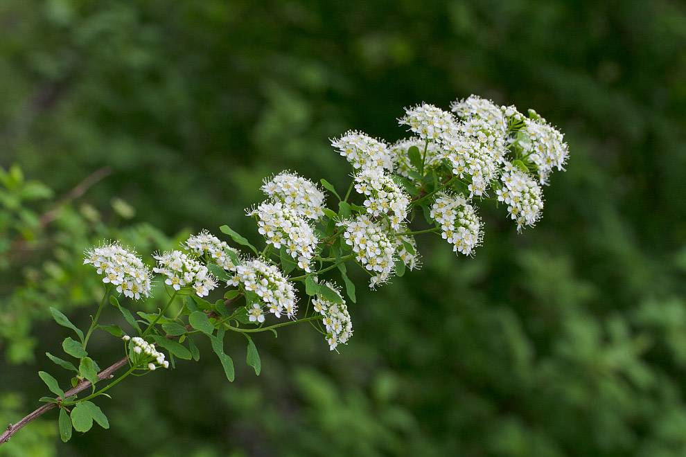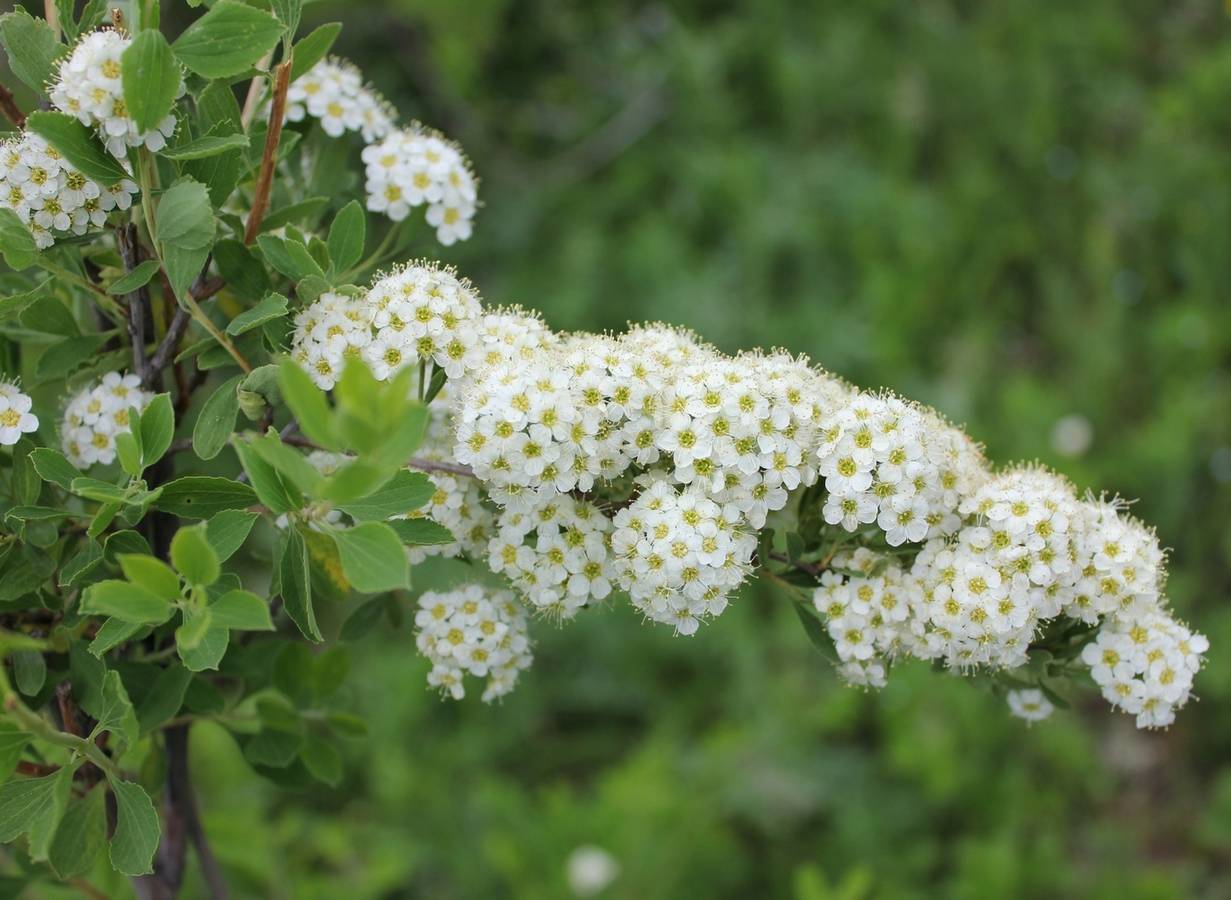 Canlı bir çalı - orta boy spirea, 3 m uzunluğa kadar, neredeyse hiç hastalıktan muzdarip değil. 2-4 dişli oval yeşil yapraklar hafif tüylüdür. Şemsiye şeklinde beyaz çok çiçekli racemes ile Mayıs-Haziran aylarında çiçek açar.