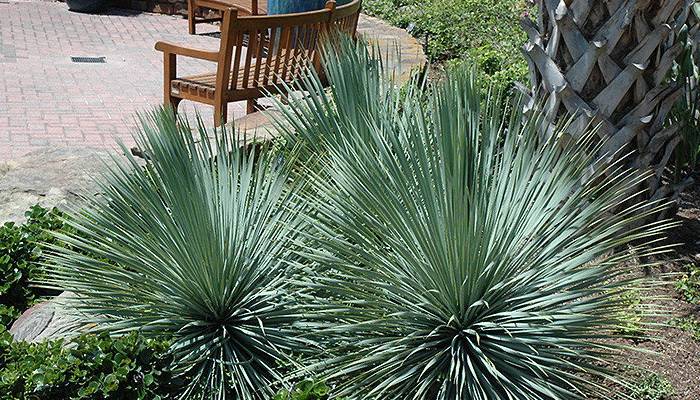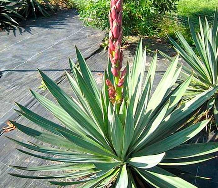 - Gri yucca, yüksekliği 200 cm'ye ulaşan bir tür dekoratif kültürdür.ABD'nin batı kıyıları, gri yucca'nın anavatanı olarak kabul edilir. Yaprak bıçaklarının uzunluğu 55-65 cm arasındadır, yaprakların yüzeyi mavimsi bir tonla koyu yeşil renktedir. Yeşil kütle, toplu yuvalarda toplanır. Çiçeklenme döneminde panikülat çiçeklerinin yüksekliği 80-100 cm'ye ulaşır.