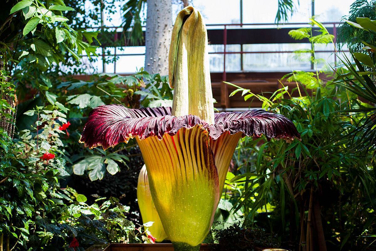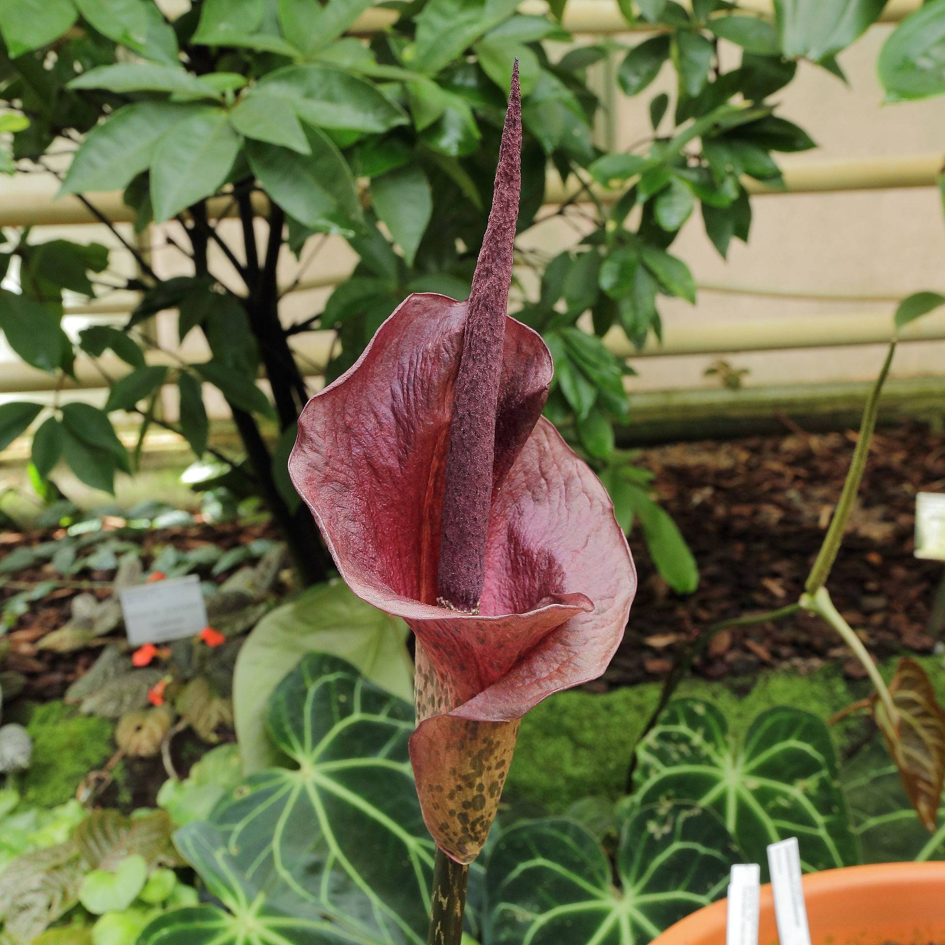 Amorphophallus titanic - най-високият и най-големият вид. Цветето на този аморфофал е най-голямото в света. Ухото е с височина около 2 м, заобиколено от голямо бургундско съцветие, теглото на грудката е около 20 кг. Той е много популярен, но е невъзможно да се отглежда такова цвете на аморфофалус у дома.