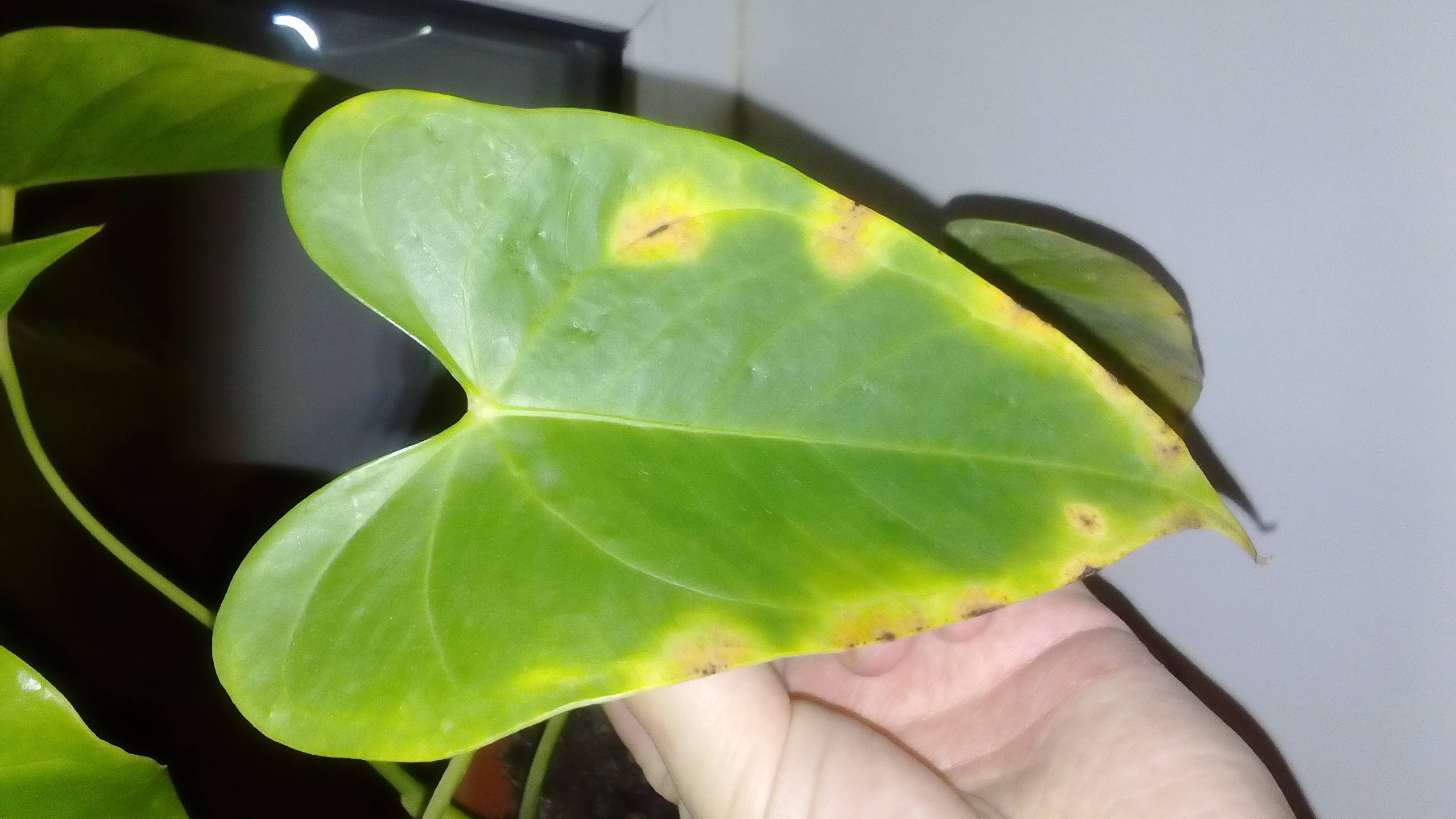 Стаята с антуриум винаги трябва да е топла. И ако стаята е под 15 градуса, има течение, тогава цветето ще започне да страда. В допълнение към жълтия цвят, листата ще станат твърде меки, летаргични. По краищата се появява жълтеникавост и постепенно се придвижва към средата на плочата. След това листата изсъхват и почерняват. Подобен проблем често възниква за начинаещите цветари през зимата, когато включат централното отопление.