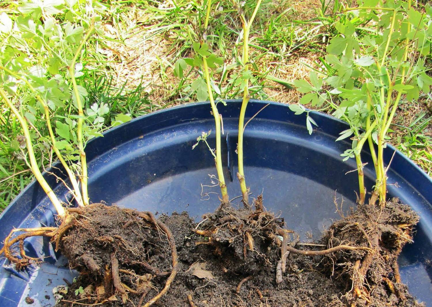 Ако разделянето на храста се извършва през есента, тогава частите от коренището не се засаждат веднага на ново място, а се изнасят в прохладно мазе до пролетта. За целта те се поставят в кутия с пясък, покрита отгоре с сфагнум или торф. През цялата зима периодично трябва да посещавате и поливате коренищата, за да не изсъхнат.