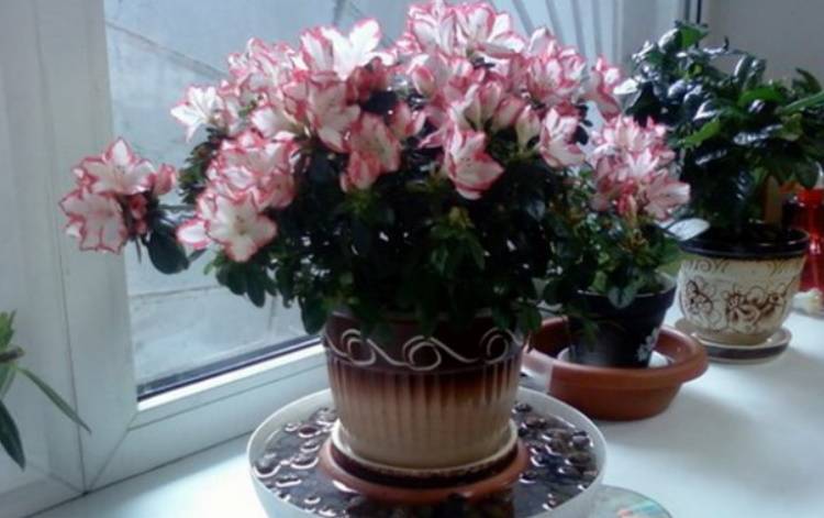 През зимата, когато сухотата на въздуха обикновено се увеличава поради работещите отоплителни системи, близо до цветето трябва да се постави устройство, което овлажнява въздуха, или саксията да се постави в палета, в която се полага експандирана глина и се излива вода . Ако е невъзможно да се изгради такова устройство, тогава азалията ще трябва редовно да се пръска от мъглив микро-спрей.