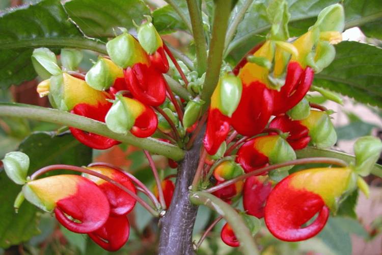 - Ниамейски балсам (Impatiens Niamniamensis) е цвете, донесено в Европа от Африка. Съцветията от този вид са оформени като тясна извита кана или рог, боядисани в нюанси на жълто, червено или жълто-червено.