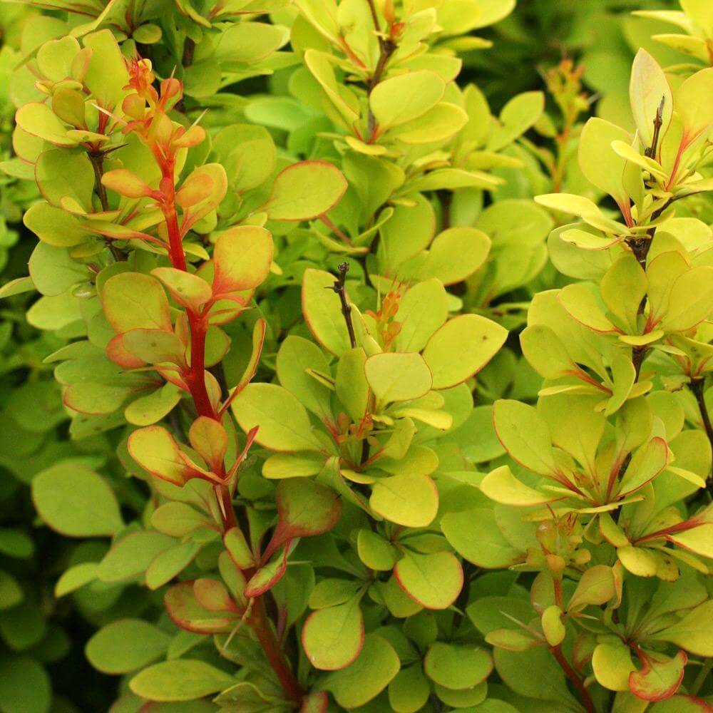- берберис Лютин Руж е компактен широколистен храст с много издънки. Височината достига само половин метър, а ширината може да я надвиши 2 пъти. По време на вегетационния период малките листа са светлозелени, до есента стават червени, след което падат. Плодовете са негодни за консумация. Сортът е абсолютно непретенциозен, изисква само повърхностни грижи. Един от най-лесните за отглеждане декоративни видове берберис, той расте добре на открито, но може да украси открита веранда или балкон поради ниския си растеж;