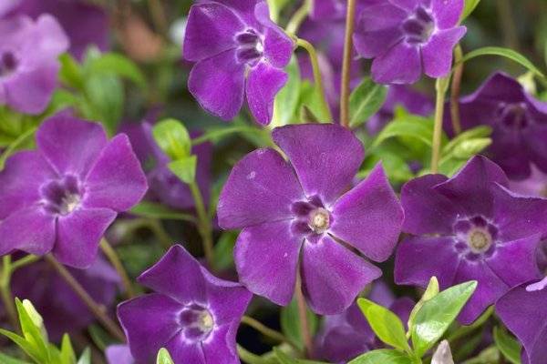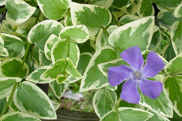 Голямата зеленика (Vinca Major) има големи пъпки и листа, цъфти два пъти годишно - през май и септември. Средният размер на храстите Alba (Alba) е до 25 см. Дизайнерите особено обичат видове с жълтеникаво-белезникави ивици зеленина (Reticulata и Variegata).