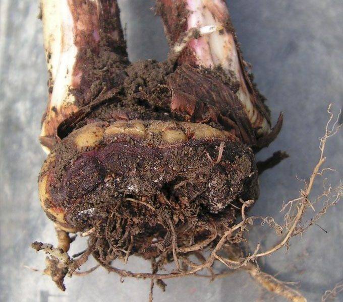 Цветето изглежда зле, не винаги образува съцветия. Ако се е образувало малко гниене, то се изрязва и повредените участъци се поръсват със сиво и въглища. При тежки повреди луковиците се мумифицират.