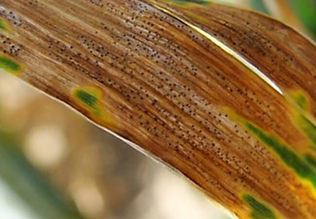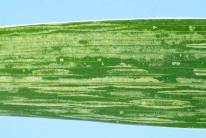 Когато е засегнат от трипс, цветът става не толкова жълт, колкото белезникав. Това може да бъде причинено и от фузариум. Но в този случай листата са жълти в основата и по-близо до върха стават по-светли.