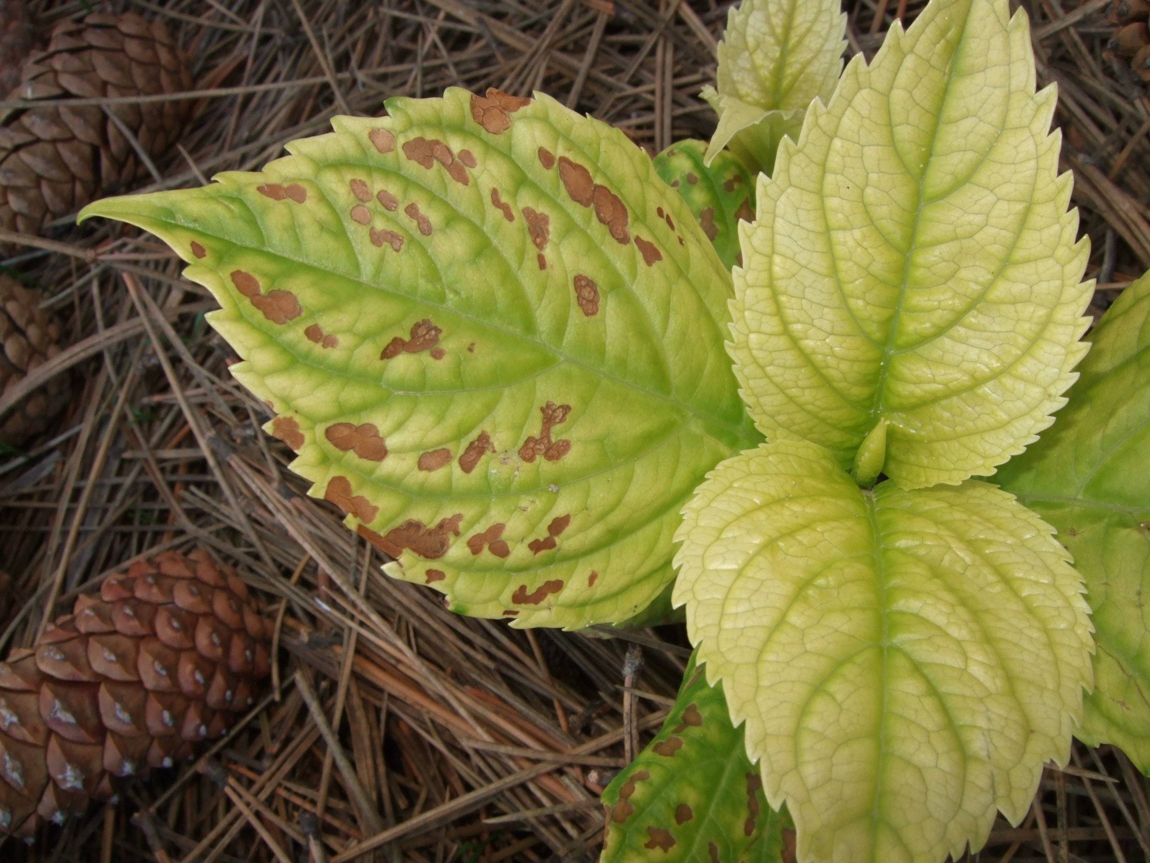 Една от основните причини, поради които листата на хортензия пожълтяват, е излишъкът на влага в почвата. Поливайте храста при нужда с топла вода сутрин или следобед.
