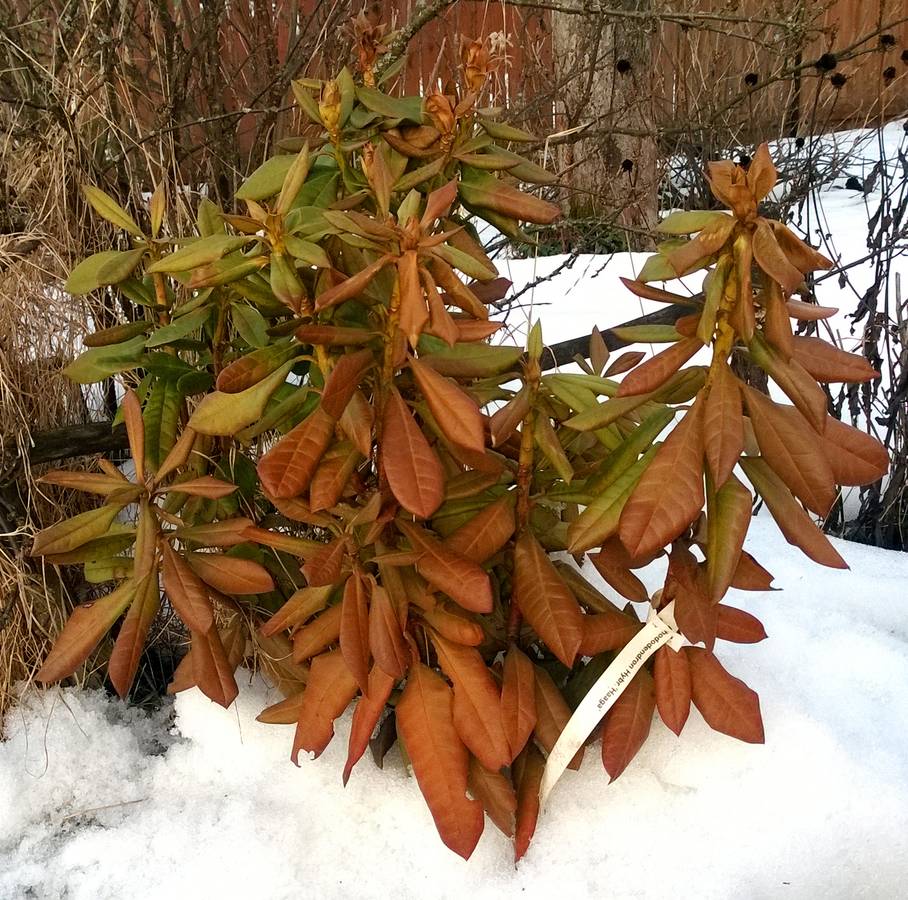 Това заболяване, или по-скоро резултатът от негативен ефект върху цветето, обикновено се проявява с резки колебания в температурата. Така че, ако през нощта рододендроните са в студена среда, а през деня лъчите на яркото слънце падат върху тях, изгарянията са почти гарантирани. Това се дължи на факта, че голямо количество вода бързо се изпарява от повърхността на нежните листа. Външно изгарянията изглеждат като сухи кафяви петна, които изсъхват много.