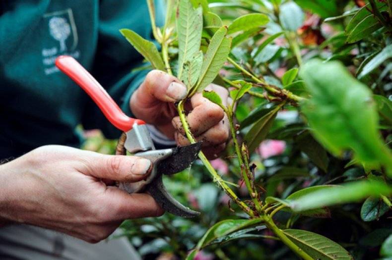 За многогодишните цветя, които включват рододендрони, резитбата е задължителна. Дори растението да изглежда красиво и буйно на външен вид, то пак се нуждае от него. Дори незначителни счупвания на клони или измръзнали участъци на цвете могат да навредят на общото му състояние и вид. На такива места могат да се появят вредни микроорганизми, те също привличат насекоми.