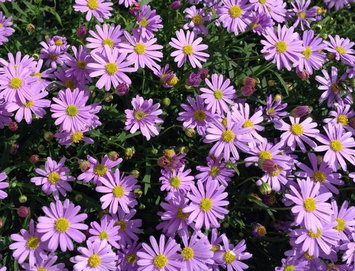 - Лилаво великолепие. Този популярен сорт се характеризира със сложни съцветия. Размерът на кошниците е 3 см. Езиковите венчелистчета се отличават с ярко лилав цвят.
