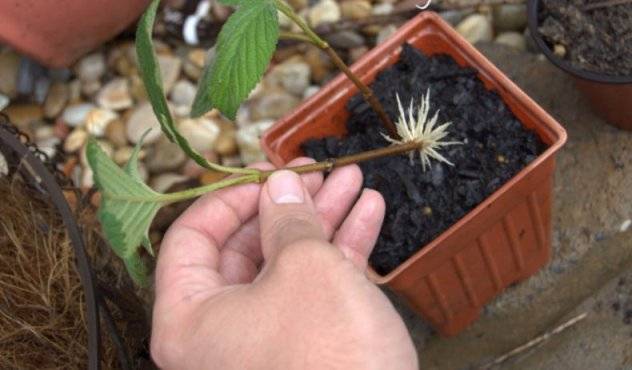 По-добре да изберете издънки в средата на юни, взети от възрастен храст. Всяка дръжка трябва да е дълга около 10 см с поне 3 възли.