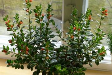 - дом - компактен храст с назъбени листа. Цветовете са сферични;