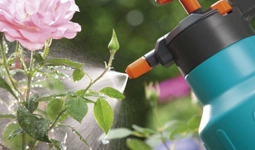 - обработката на розите включва тяхното пръскане с работещ състав. За удобство градинарите използват спрей бутилка;
