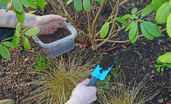 Особеността на дългодействащите торове е постоянното и постепенно хранене на рододендрона.