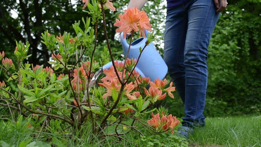 Ако растението е било мулчирано, тогава преди хранене мулчът по краищата на кръга на ствола се измества с една трета. Преди да оплодите растението, трябва да проучите не само как да го храните правилно, но и как да поливате рододендрона.