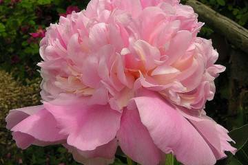 Има големи розово-лилави цветя с диаметър до 25 см. Стъблата на божур са тънки и ниски, така че са вързани. Растението е непретенциозно.