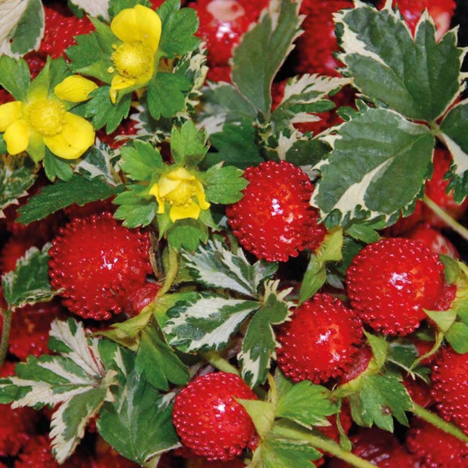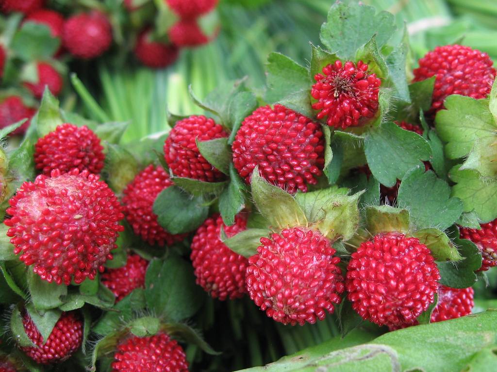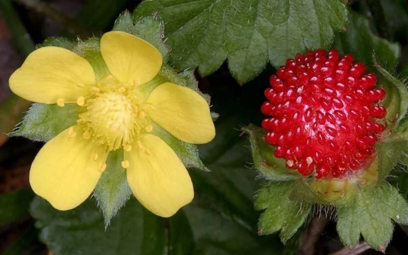- плодовете са идентични с тези на ягодите - кръгли, червени плодове, изцяло покрити с малки семена.