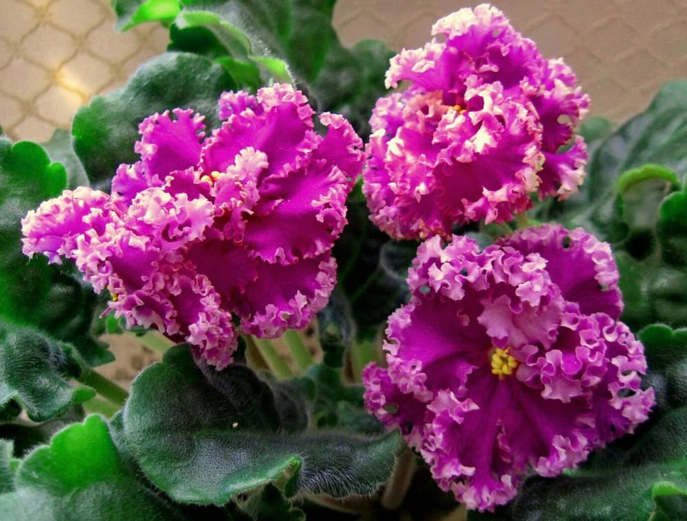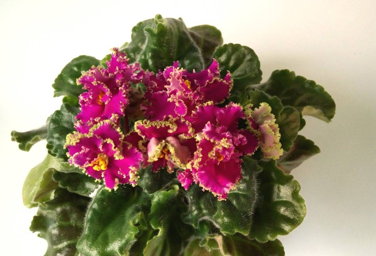 Сенполия цъфти красиво и дълго време. През този период целият храст е покрит с пурпурни съцветия. Виолетовата розетка се състои от големи кадифено зелени листа. С напредване на възрастта ръбовете на листните плочи могат да придобият лека вълнообразност. Красивите съцветия растат от средата на изхода.