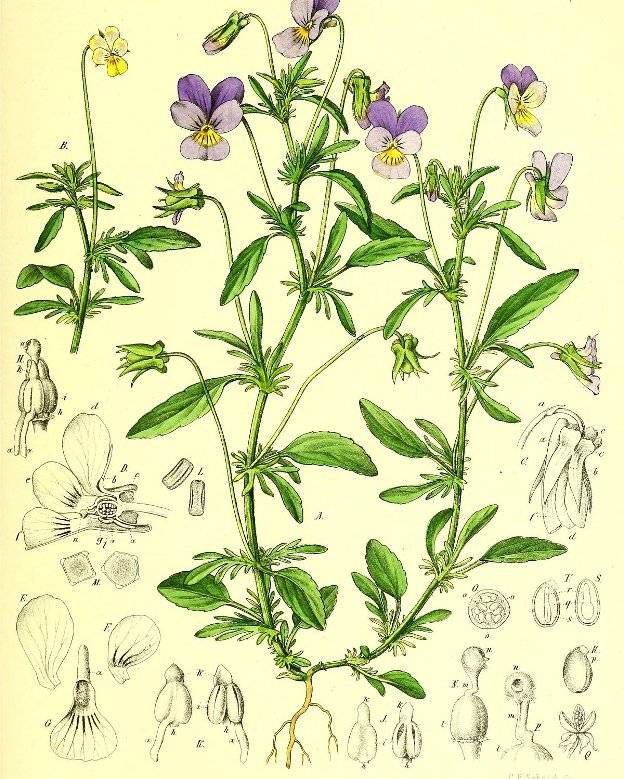 Трицветна виолетова билка се събира по време на цъфтежа.