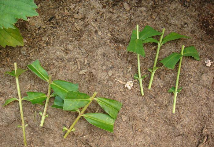 Когато засаждате с резници, е по-добре да изберете есента. Необходимо е да се направят дупки за засаждане на разстояние 0,5 м една от друга. Резниците се задълбочават с около 5 см. Поливането трябва да се извършва само след 2-3 дни от засаждането. Количеството приложена вода трябва да е достатъчно.