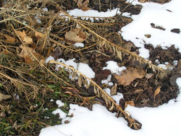 След резитбата растенията се покриват със суха трева, зеленчукови върхове или смърчови клони.