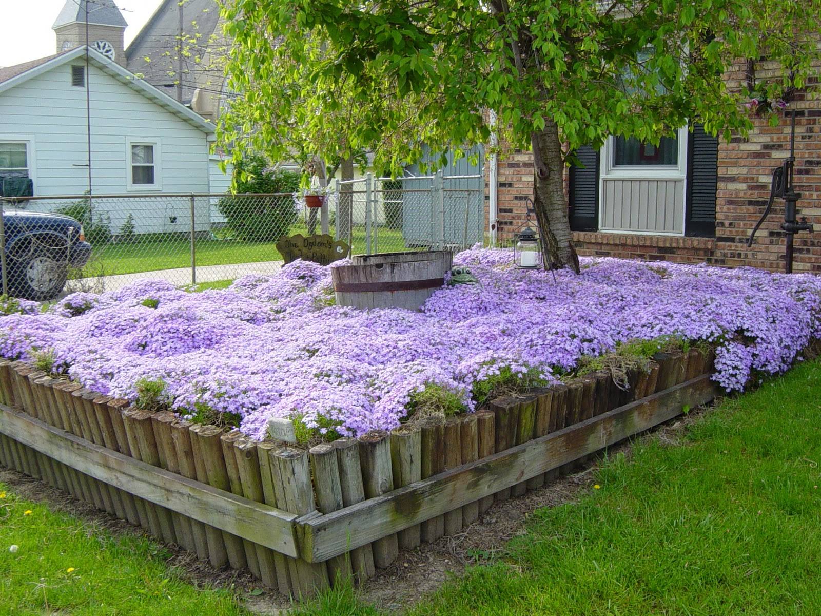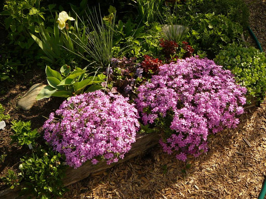 Но ако лехата е на изкуствено възвишение, до фонтана и други елементи, е важно да отстъпите на флокса подобаващото му място. Например, популярно решение, когато субулатът оформя цветното легло по периметъра. Ако лехата се издигне, тя прекрасно побеждава формата и продължава да пълзи надолу.