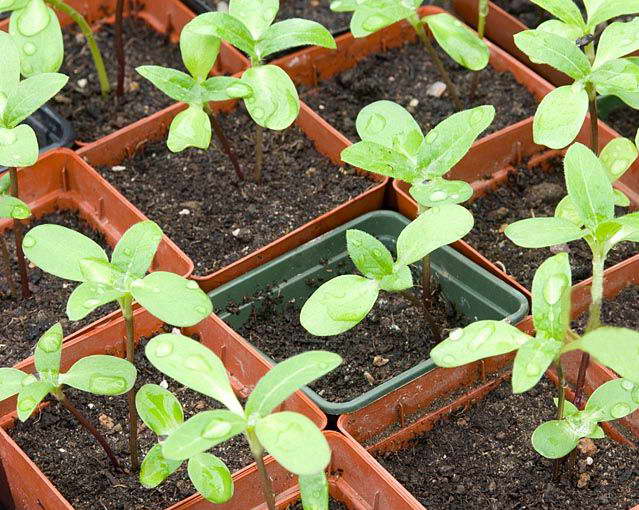 Струва си да засаждате семена в голям контейнер. Като начало трябва да се напълни със земя, след това да се разстила посадъчният материал и да се поръси с пръст. Покрийте отгоре с фолио, за да получите парников ефект. След това преместете саксията на топло място и периодично проветрявайте. Когато се появят кълнове, филмът може да бъде премахнат. Когато се появят 2 истински листа, растенията се преместват в отделни контейнери.