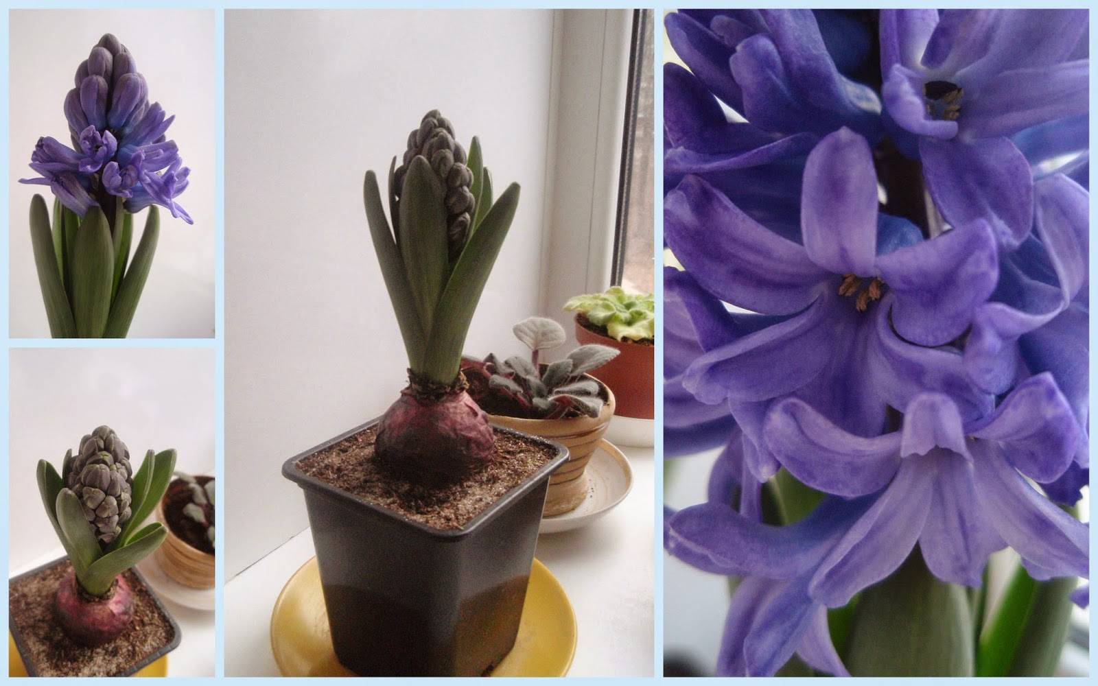 За красив цъфтеж на зюмбюли в саксии трябва да им се осигурят пълни грижи в домашни условия. Ако следвате препоръките за отглеждане, с течение на времето на цветята се появяват цветни стъбла и след това се образуват пъпки.