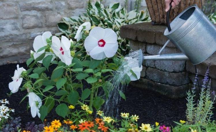 - Полива се обилно само засадена китайска роза.Изсипете поне 10 литра вода под всеки храст.