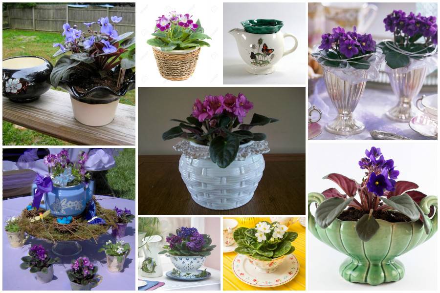 Цветарите често предпочитат да избират дизайнерски саксии. По принцип това са тези, които следват интериора си и се опитват да дадат на стаята оригинален стил. Но не бъдете много ревностни с оригиналните форми, тъй като теменужката е доста чувствителна към избора на контейнери. Ето защо, ако има желание да си купите нестандартна ръчно изработена саксия, по-добре е да се съсредоточите върху оригиналните цветове и методи за декориране на външната повърхност.