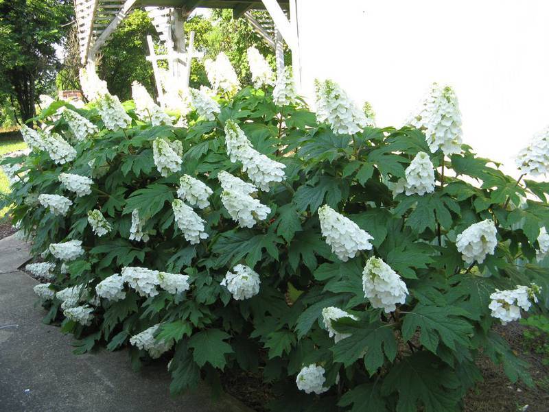 Цветна градина с едролистна хортензия ще изглежда много впечатляващо. Това растение е забележително със своята необикновена красота. В същото време той не може да се похвали с добра устойчивост на замръзване, поради което дори в района на Москва културата е изолирана.