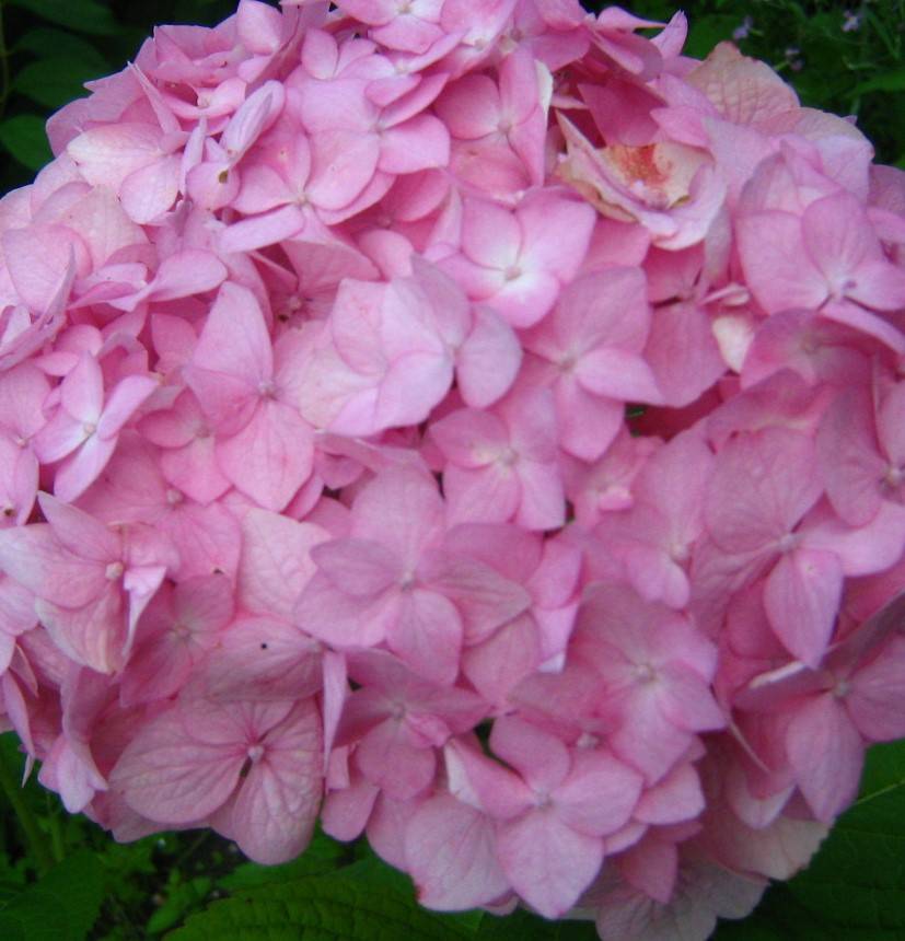 Описание на цъфтяща едролистна хортензия Розов букет