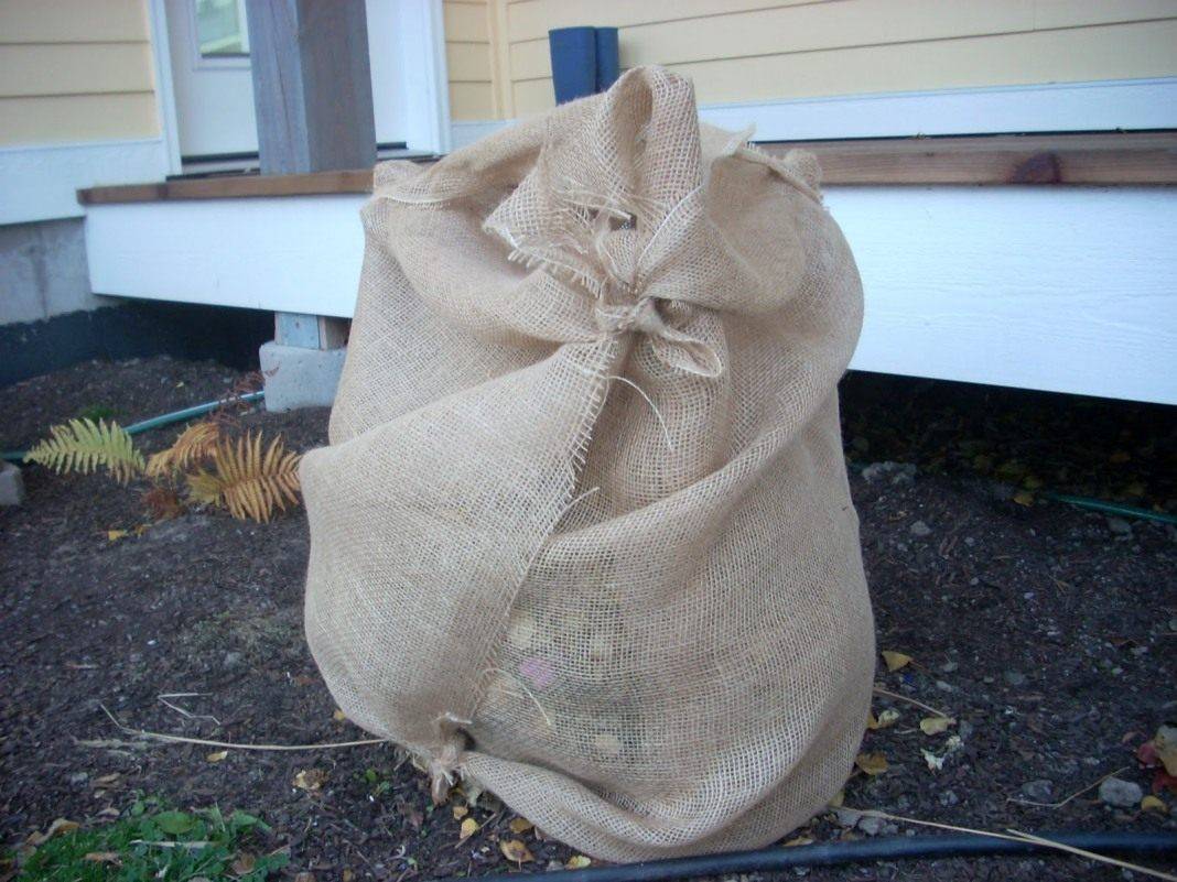 Клоните на храстите са спретнато завързани и положени на земята. Отгоре растенията са покрити със защита (това може да бъде агрофибър, плътна тъкан). Заслонът е фиксиран.