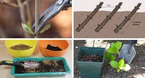 През есента издънката се нарязва на резници, които след това се поставят в стимулатор на растежа, задълбочени в земята под остър ъгъл. След това засаждането се покрива. През пролетта вкоренените процеси се трансплантират.