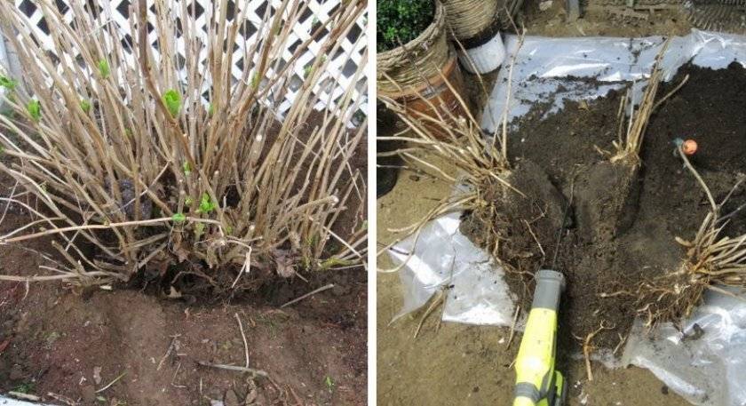 Процедурата се извършва в началото на пролетта, докато започне активният растеж на хортензия. Растението трябва да бъде внимателно изкопано, без да се уврежда кореновата система в процеса. Самият корен е разделен на 2-3 части, така че на всяко разделение има няколко точки на растеж.