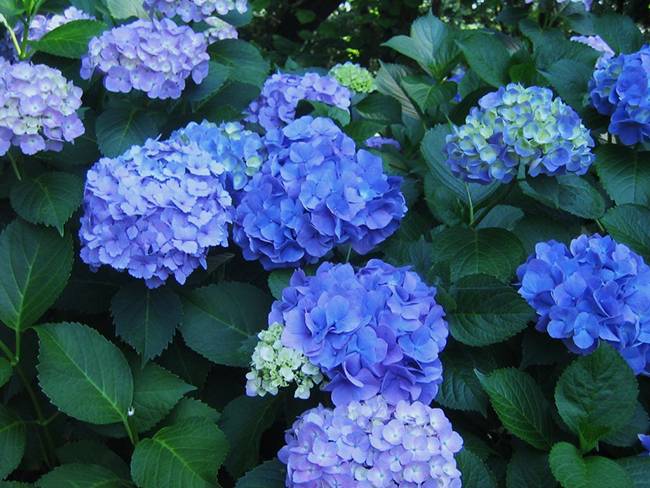Едролистната синя хортензия може да натрупва алуминий от кисела почва. Именно това придава на цветята му наситен син цвят.Днес са известни много разновидности на такава хортензия. Хортензията Blue Sky и други видове са много популярни.
