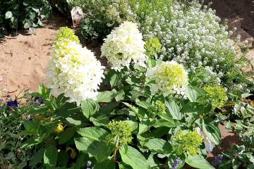 По време на периода на цъфтеж растението се нуждае от редовно обилно поливане. В самото начало на отварянето на пъпките можете да подхранвате храстите с органичен тор и да отрежете неотворените външни съцветия. Това ще позволи на растението да образува по-големи метлици.