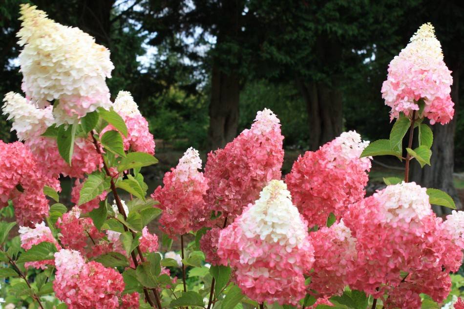 Хортензиите са бяло-розови метлички, най-често срещани в градините: