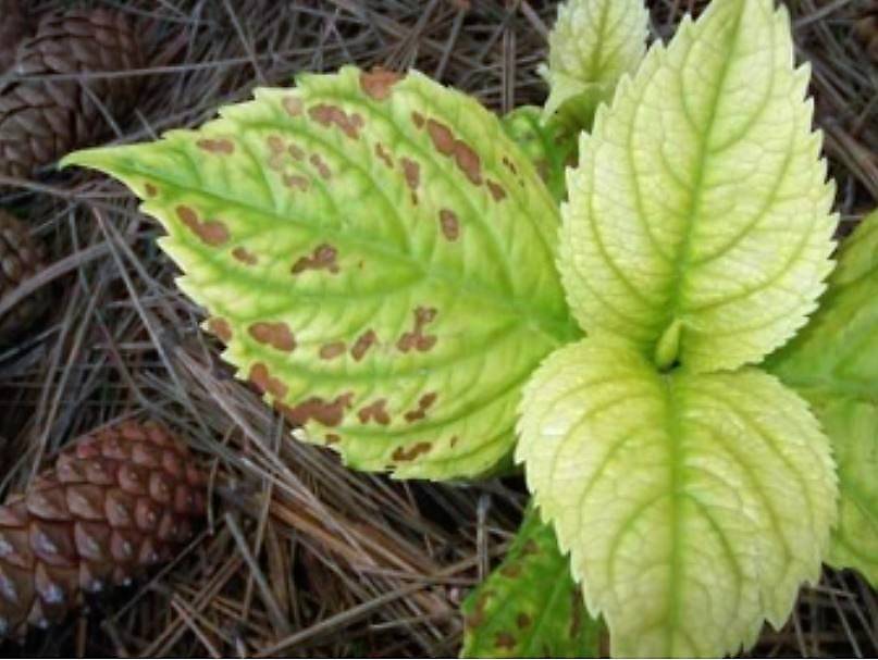 - ръжда и пръстеновидни петна. Има бърза промяна в цвета на листата. Това са най-редките заболявания. Ако обаче Даймънд се разболее от тях, тогава няма да е възможно да спаси храста. Ще трябва да се отървете от заразената хортензия.