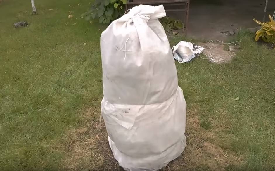 Ако не искате да огънете храста или няма място за това до него, трябва да изградите рамка от метал, да я напълните със сухи листа, дървени стърготини и да я покриете с филм отгоре.