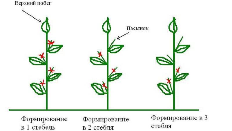 - Премахнете нови вторични издънки на върха на две листа. Доведените пасинки не се отрязват отстрани.