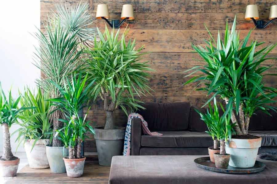 Юка е непретенциозна и понася резитбата без проблеми. Правилно оформеното палмово дърво ще изглежда великолепно в интериора, особено в голямо пространство на частна къща, в офисната зала или в хола. Удължени листа с наситен зелен цвят ще изпълнят стаята със свежа тропическа екзотика.