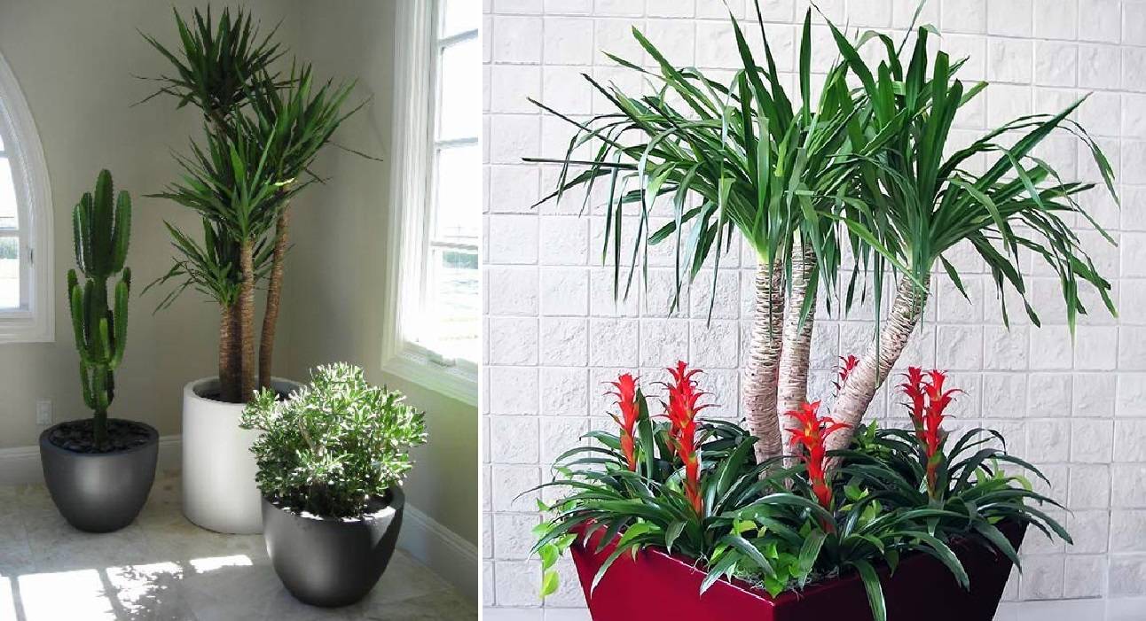 Подрязването на юка издънки годишно ви позволява да коригирате формата на багажника и неговото разклоняване. Необичайно закрито дърво ще се впише идеално в композицията в интериора на апартамент или офис, заемайки централно място в него. На фона на палмово дърво, фикусът на Бенджамин, спатифилум, замиокулкас или парично дърво ще изглеждат страхотно.