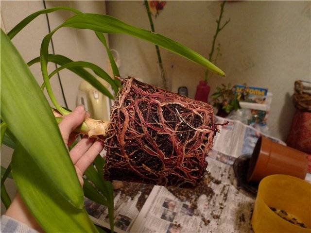 Презареждането след покупка също трябва да бъде с максимално освобождаване на root. Най-лесният начин за измиване на почвата е под течаща вода. Така че, корените ще останат непокътнати.