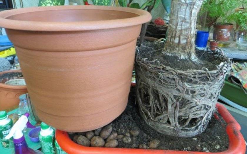 Размерът на саксията е съобразен с кореновата система. Освен това все още трябва да има място за растежа на нови корени. При всяка трансплантация диаметърът на новата саксия трябва да се взема повече от 2-3 см.