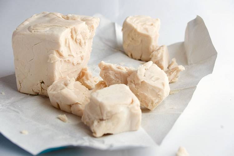 Една от най-популярните и ефективни рецепти е използването на прясна мая, която обикновено се продава в брикети. Те приличат на правоъгълници от топено сирене. За да направите торен дресинг от прясна версия, ще ви трябва: